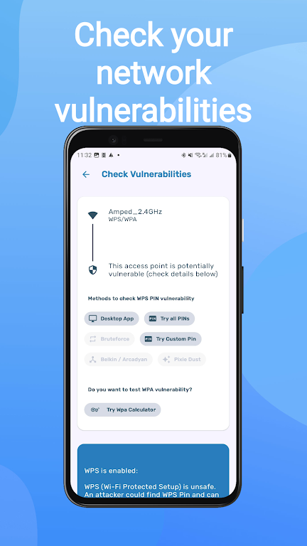 🛡️ WiFi Security Scan: Check if your wireless LAN is exposed to common threats such as WPS and WPA vulnerabilities.