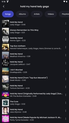 ViMusic is an app that lets you play songs from YouTube Music without any limitations. To search for songs, tap on the search section. After that, the song you want to listen to will appear. You can search for songs, artists, video clips, or even entire playlists.