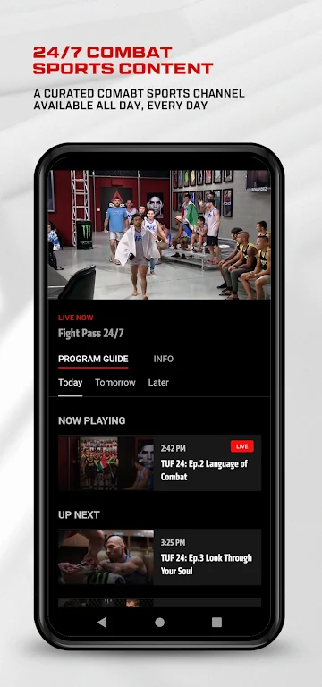 --Originalprogrammierung: Genießen Sie Originalprogrammierung und ausführliche Berichterstattung, einschließlich Dokumentationen, Interviews und exklusiver Erfolgssendungen wie Fightlore und Year of the Fighter.