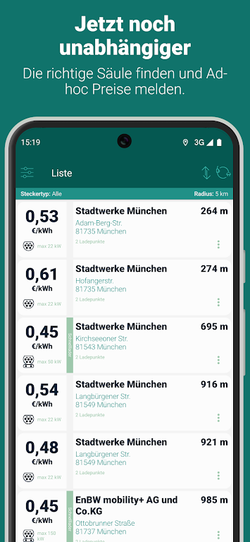 - Finden Sie nicht nur die Position von Ladestationen, sondern z.B. auch unterstützte Steckertypen, Ladeleistungen uvm.