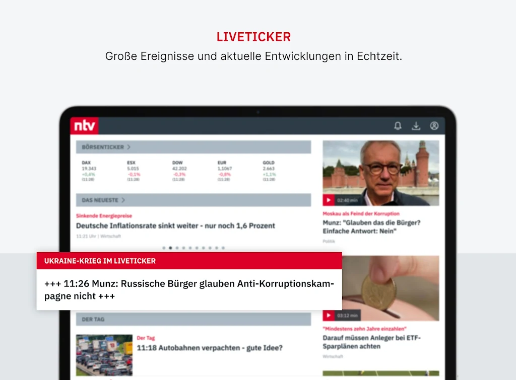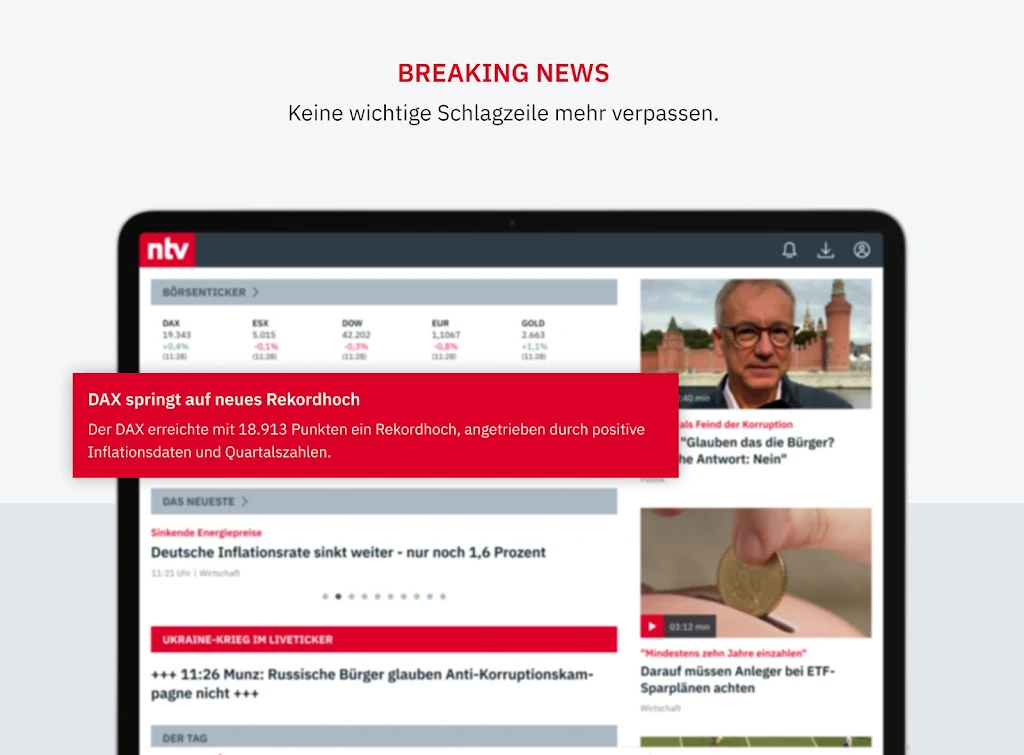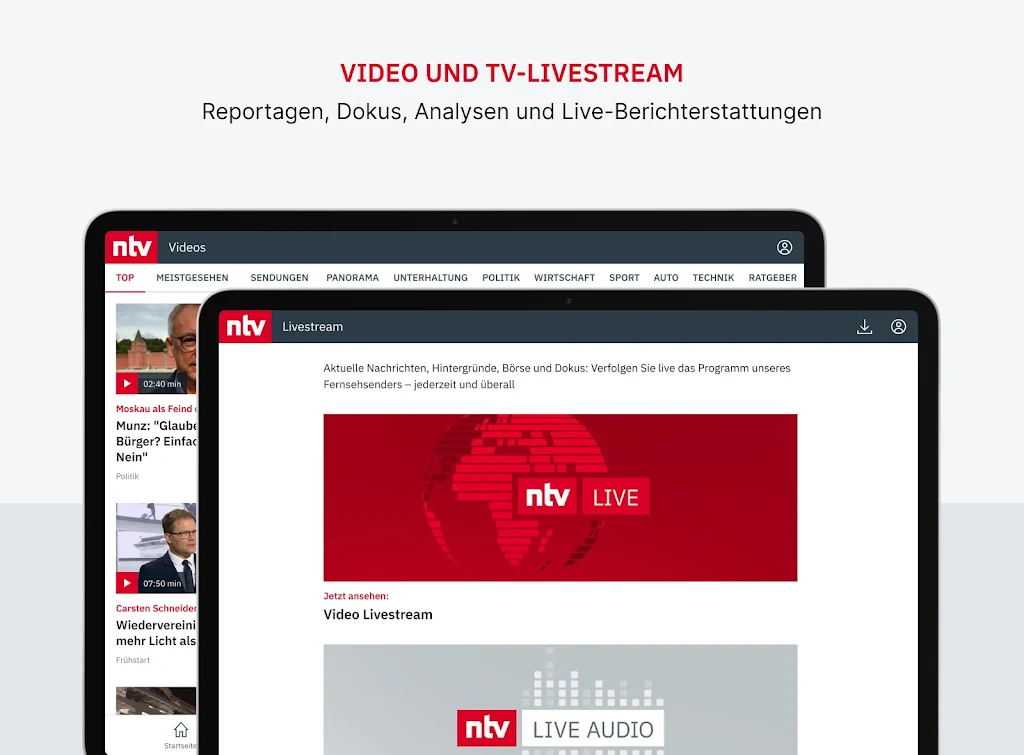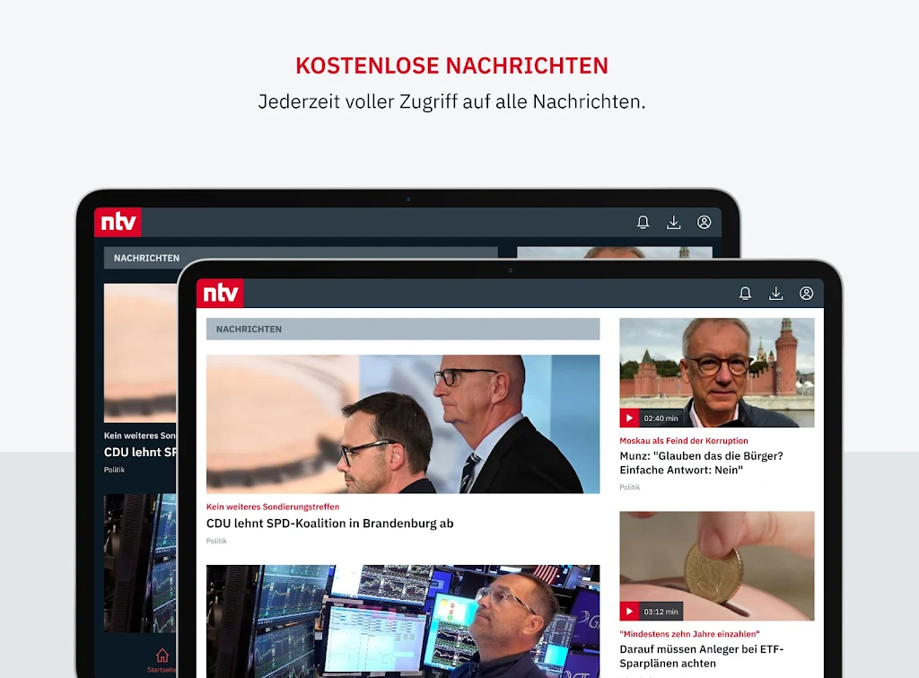 Laden Sie die ntv-App jetzt herunter und bleiben Sie immer bestens informiert – zuverlässig, schnell und direkt auf Ihrem Smartphone.