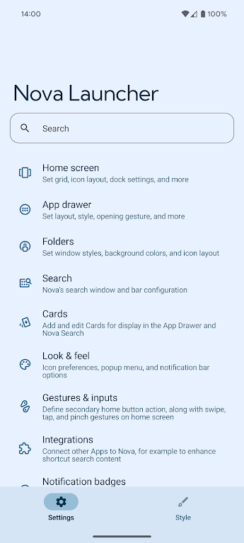 Nova Launcher es un reemplazo de pantalla de inicio potente, personalizable y versátil. Nova ofrece funciones avanzadas para mejorar sus pantallas de inicio, pero sigue siendo una opción excelente y fácil de usar para todos. Ya sea que desee renovar completamente sus pantallas de inicio o esté buscando un iniciador de inicio más limpio y rápido, Nova es la respuesta.✨ Las funciones más nuevas