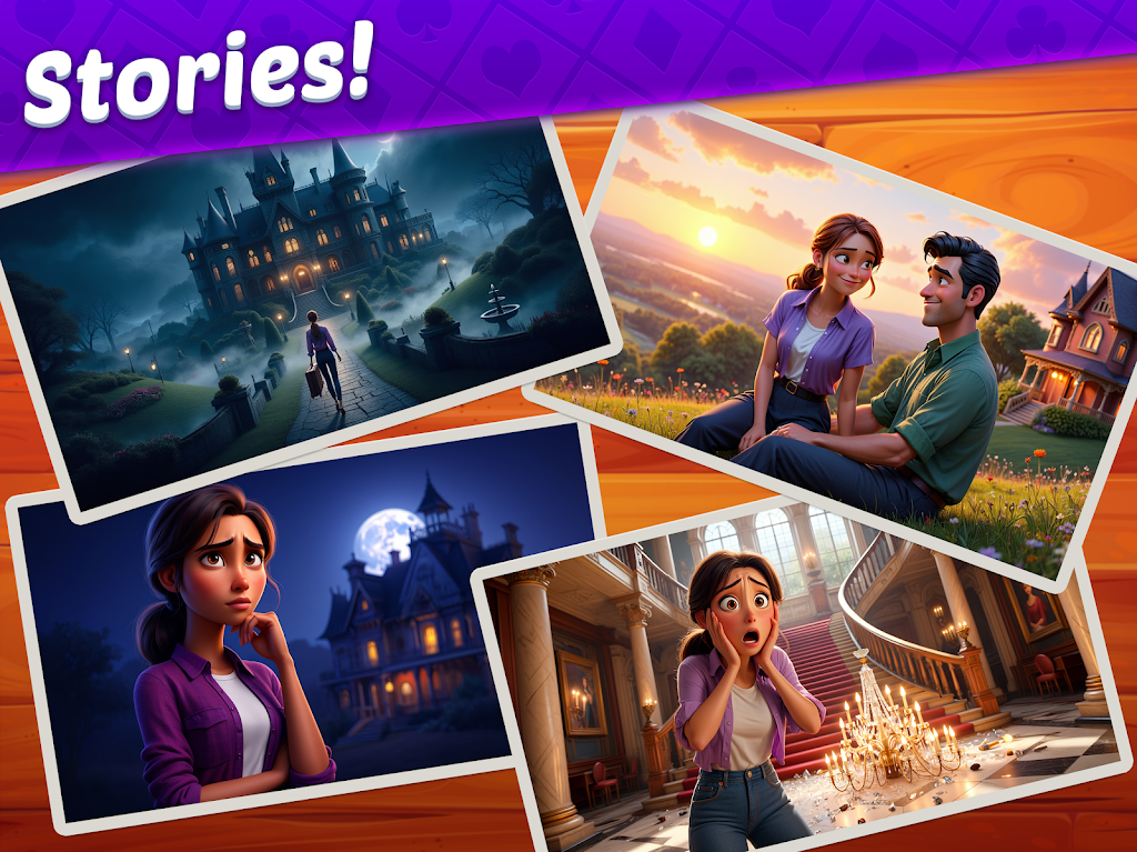 ¡Descubre tesoros escondidos, recoge pistas y desoculta secretos conforme restauras nuevas y emocionantes salas de la mansión! Vive una aventura llena de misterio y romance, ¡con giros argumentales que te dejarán boquiabierto en todo momento! Siéntate y relájate con este de juego de puzles basado en el solitario y ¡empieza la renovación de tus sueños!