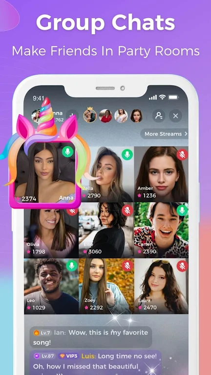 Con nuestra selección ilimitada de transmisiones en vivo, siempre encontrarás algo nuevo y emocionante. Únase a transmisiones de video o audio, envíe regalos, interactúe con los Anfitriones y diviértase. Inicie su propia transmisión virtual y muestre a todos un lado completamente diferente de usted.