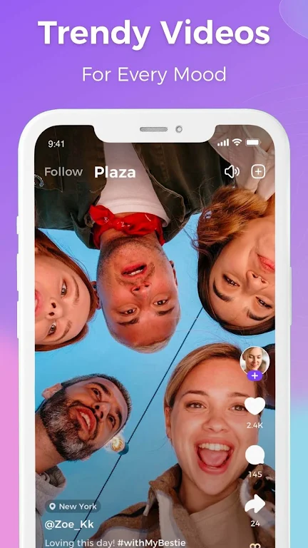 ¡Comparte transmisiones y videos, envía mensajes de texto y conoce a los amigos más inesperados cerca!