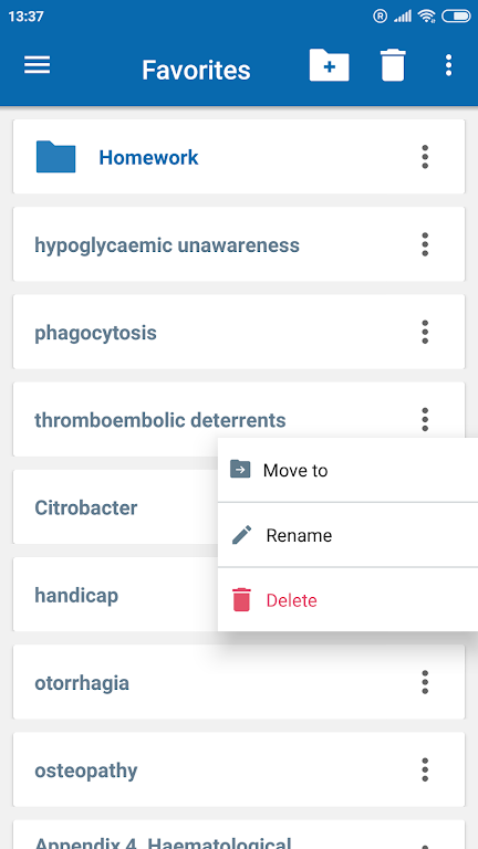 • ‘Favorites’ feature to create custom folders with lists of words from the extensive library
