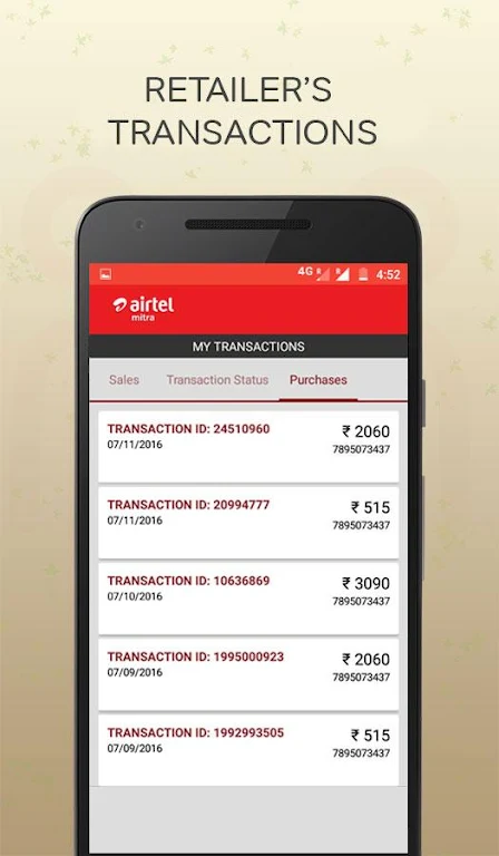 एक ही स्थान पर अपने सभी एयरटेल रिटेलर खाता और सेवाओं का प्रबंधन करने के लिए मित्रा एप्लिकेशन का उपयोग करें। मित्रा एक सरल, सहज यूजर इंटरफेस यह आसान खुदरा विक्रेताओं का उपयोग करने के लिए बनाता है। इसके अलावा, वहाँ इस app पर कोई उपयोग आरोप हैं।मित्रा प्रसाद: