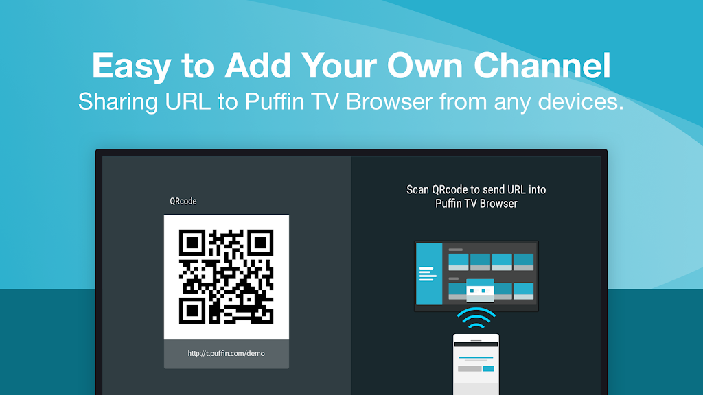 • Kirim tautan situs web apa pun ke Puffin TV untuk pengalaman yang lebih imersif