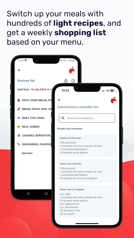 - La dieta e la lista della spesa interattiva settimanale sono sempre a portata di mano.