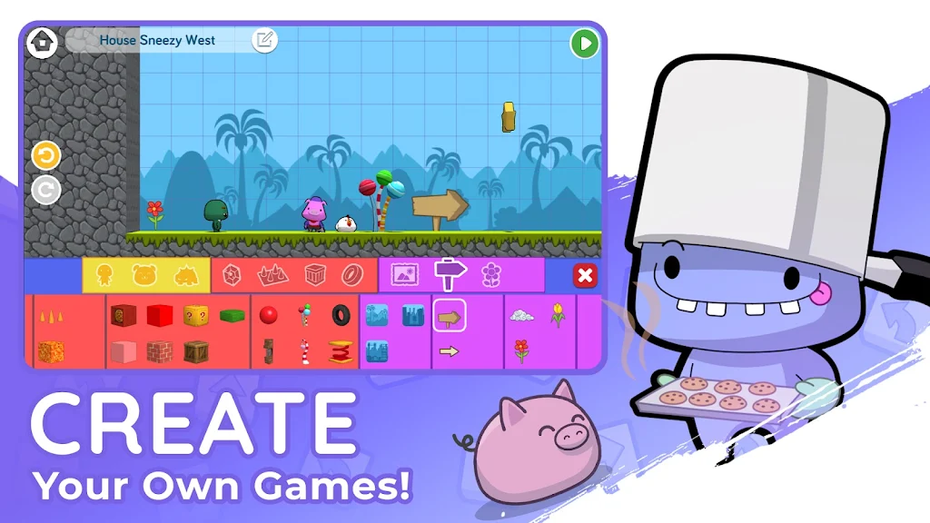 Combina la narrazione e il design del gioco per creare giochi e storie unici in un'ambientazione fantastica per far giocare altri programmatori per bambini.
