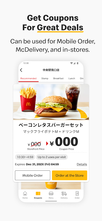マクドナルド公式アプリは、クーポンなどのお得な情報を毎日配信しているだけでなく、注文からお支払いまでを完了できるアプリです。【ご利用いただける機能】