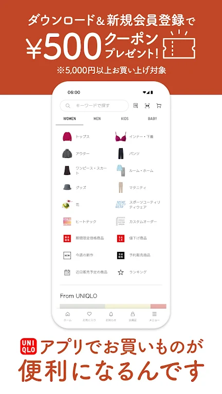 【世界最大級のユニクロを指先一つで。ユニクロ公式ファッション通販アプリで買いもの上手になろう!】■ 500円クーポンプレゼント アプリを新規ダウンロード