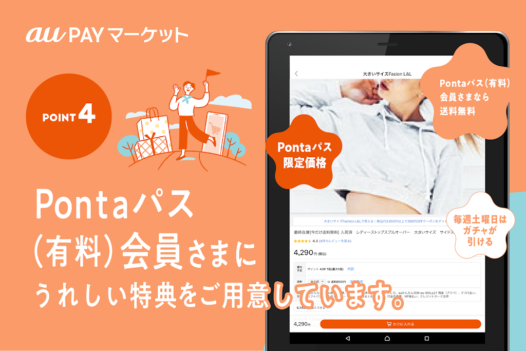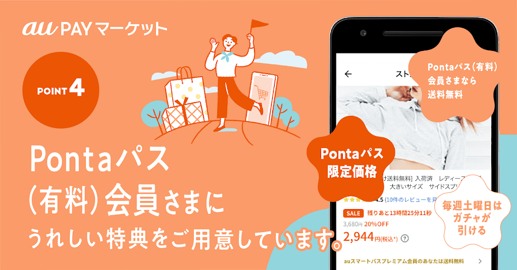 【auご利用のお客さま限定のおトクな仕組みが盛りだくさん】◆au PAY カード・au PAY 残高ご利用、Pontaパス会員の方はさらにPontaポイント増量!◆Pontaパス会員の方はさらに対象商品が送料無料!