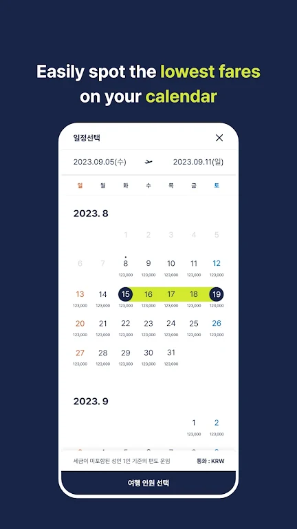 - 캘린더에서 한눈에 확인 가능한 최저가 정보