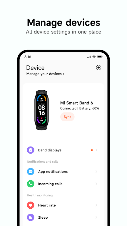 Door Mi Fitness te combineren met smartwatch- of smartband-apparaten, kunnen gebruikers hun gezondheids- en fitnessgegevens volgen.Mi Fitness ondersteund: Xiaomi Watch-serie, Redmi Watch-serie, Xiaomi Smart Band-serie, Redmi Smart Band-serie.