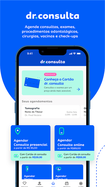agende consultas, exames e consultas online. Confira todos resultados pelo app