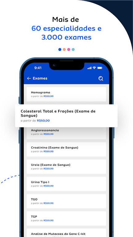 - Pesquisa pelo que precisa: filtre por tipos de consultas, exames, nome dos profissionais, data e horário. Você também pode agendar um atendimento domiciliar.