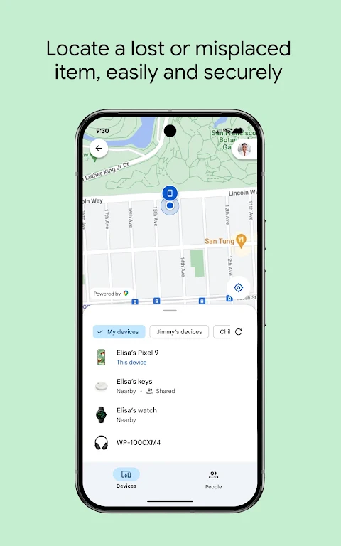 Находите устройства и аксессуары, а также показывайте местоположение близким.