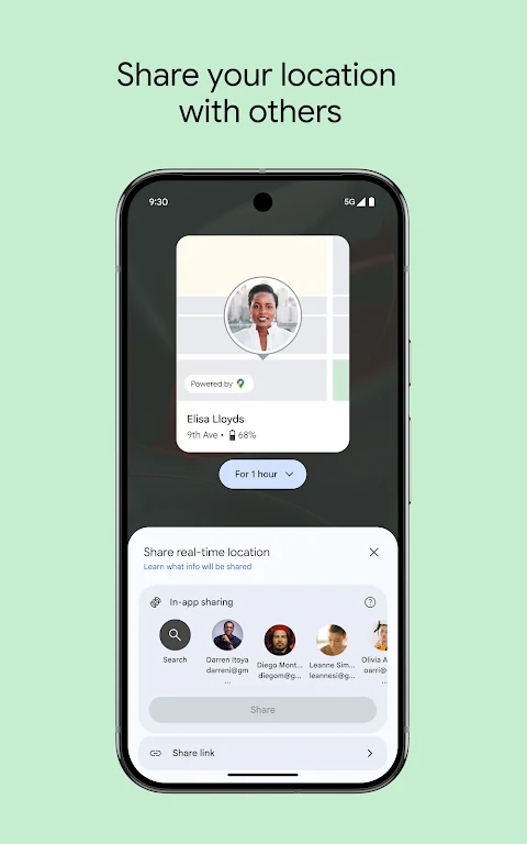 • Делитесь информацией о текущем местоположении, чтобы встретиться с друзьями или убедиться, что близкие добрались до дома.
