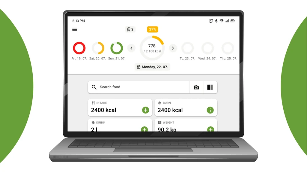 Бесплатно доступна статистика о потребляемых калориях, о темпе набора или потери веса, расчет водного баланса, что поможет похудеть. Калькулятор калорий позволяет расчитать калории, сбросить вес, помогает худеть и систематизировать свою активность в сочетании с приемами пищи.