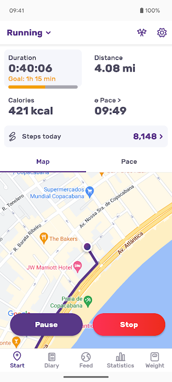 ยิ่งไปกว่านั้น แอปฟิตเนสนี้ ยังแสดงปริมาณแคลอรี่ที่คุณเผาผลาญได้อย่างแม่นยำ รวมถึง ระยะทางและอัตราการเดิน ในขณะที่คุณกำลังวิ่ง ด้วย FITAPP คุณยังสามารถเปรียบเทียบกิจกรรมที่แตกต่างกันได้ ซึ่งคุณสมบัตินี้ช่วยให้คุณติดตามกิจกรรมและการวิ่งทั้งหมดของคุณผ่านทาง GPS และดูว่าคุณได้เผาผลาญแคลอรี่ไปทั้งหมดเท่าไหร่ นอกจากนี้ คุณยังจะได้รับข้อมูลน้ำหนักของคุณโดยสรุปอย่างละเอียด ที่จะช่วยในการลดน้ำหนักของคุณระหว่างการควบคุมอาหาร FITAPP คือ โค้ชในการวิ่งส่วนตัวของคุณ แอปนี้จะติดตามคุณเมื่อคุณต้องการเพิ่มสุขภาพ ลดน้ำหนัก เพิ่มความแข็งแกร่งหรือบรรลุเป้าหมายความแข็งแรงของคุณ