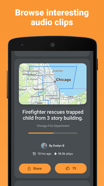 ฟังเสียงสดจากเครื่องสแกนดับเพลิงและตำรวจกว่า 8,000 เครื่อง สถานีวิทยุสภาพอากาศ NOAA เครื่องทวนสัญญาณวิทยุแฮม การจราจรทางอากาศ (ATC) และวิทยุทางทะเลจากทั่วโลก เปิดการแจ้งเตือนเพื่อรับการแจ้งเตือนทุกครั้งที่สแกนเนอร์มีผู้ฟังมากกว่า 2,500 คน (เพื่อดูเหตุการณ์สำคัญและข่าวด่วน)คุณสมบัติ