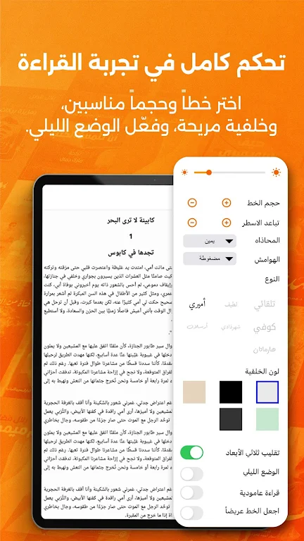 • Gece okuma özelliği ve yazı tipini ve boyutunu değiştirme yeteneği ve kitap sayfalarını çevirmenin düzgünlüğü