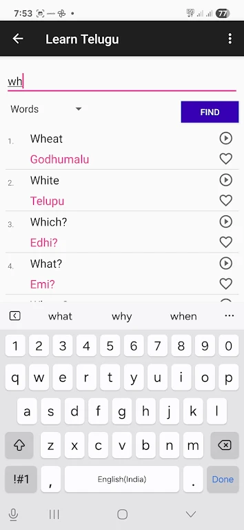 Tìm hiểu ngôn ngữ Telugu thông qua tiếng Anh với phát âm âm thanh.